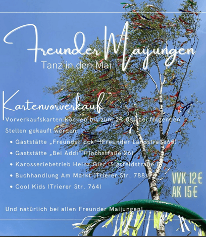 Auch in diesem Jahr werden wir wieder wie gewohnt mit euch in den Mai Tanzen!